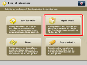 → [Réglages de fonction] → [Mémoriser/Accéder aux fichiers] → [Réglages d'espace avancé] → [Interdire écriture depuis l'extérieur].
