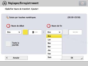 les réglages de transfert sont valides pour les jours et les heures spécifiés.