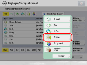 Enregistrement de l'adresse du dossier dans le carnet d'adresses pour les documents envoyés par fax