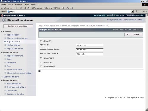 Réglage imageRUNNER ADVANCE