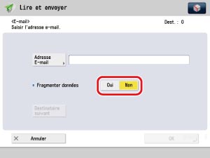 Définir une taille maximale de données de l'envoi inférieure à la limite des données du serveur de messagerie. Si la taille des données est définie sur "0" Mo, aucune limite n'est imposée aux données envoyées. |