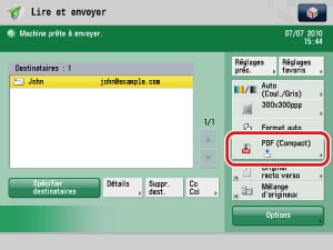 Adresse e-mail acquise pour la machine imageRUNNER ADVANCE