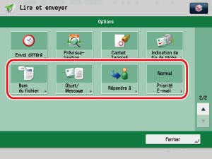 Seuls les réglages mémorisés peuvent être sélectionnés pour "Nom de l'expéditeur" et "Répondre à". Il est impossible de saisir un nouveau destinataire dans l'écran Options. Mémoriser le destinataire dans Réglages/Enregistrement. Le "Nom de l'expéditeur" affiché à l'écran de réception est le nom de l'unité défini pour la machine imageRUNNER ADVANCE chargée de l'envoi. Le réglage "Nom de l'expéditeur" n'est pas renseigné.