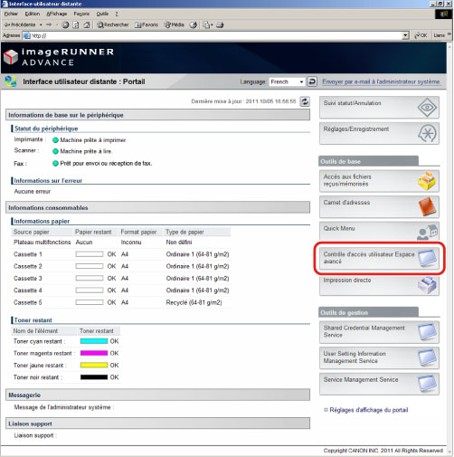 Dans l'écran de portail, cliquer sur [Contrôle d'accès utilisateur Espace avancé] à partir de l'application.
