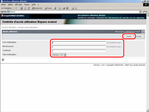 Démarrer l'interface utilisateur distante → saisir l'URL suivant dans le navigateur Web → cliquer sur [Connexion Admin].