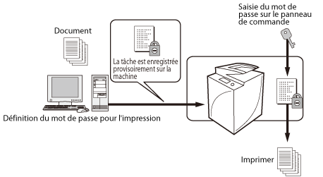 Il convient de saisir de nouveau le mot de passe pour imprimer à partir de la machine. Une fois le mot de passe défini pour le document, le consigner et le conserver en lieu sûr.