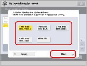 Il est impossible d'utiliser la machine pendant la suppression des données du disque dur. Cette action peut durer un certain temps avant que la machine ne devienne disponible pour la lecture.