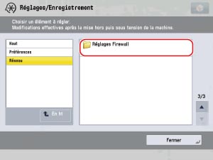 → [Préférences] → [Réseau] → [Réglages Firewall].