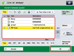 Sélectionner le destinataire mémorisé → appuyer sur [OK].