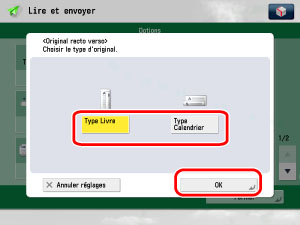 Sélectionner [Original recto verso] → indiquer le type d'original recto verso → appuyer sur [OK].