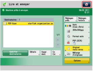 Placer les originaux sur la vitre d'exposition ou dans le chargeur → appuyer sur [Lire et envoyer] à l'écran Menu principal.
