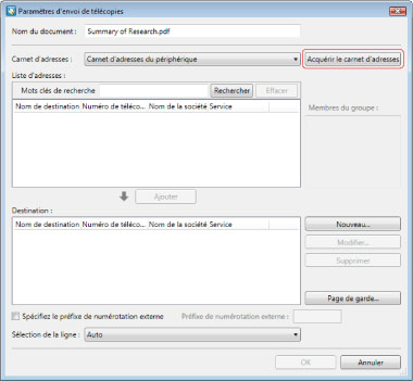 Si le réglage du numéro d'accès est spécifié dans un périphérique, la boîte de dialogue [Acquérir le carnet d'adresses] s'affiche.