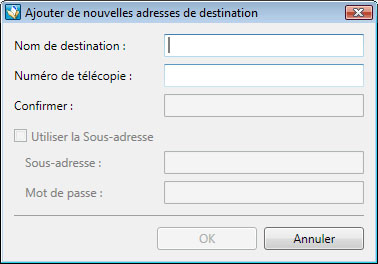 Saisissez la sous-adresse du destinataire. (Elle peut compter jusqu'à 20 chiffres et symboles ["#" et "*"])