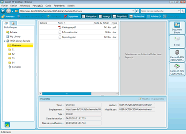 L'icône de sortie de l'imageRUNNER ADVANCE est enregistrée dans la barre de sortie de l'iW Desktop.