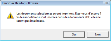 Selon la configuration de l'iW Desktop, un message de confirmation peut apparaître. Si cela est le cas, cliquez sur [Oui]. Pour plus d'informations, consultez "Informations de référence".