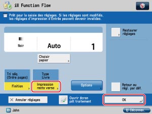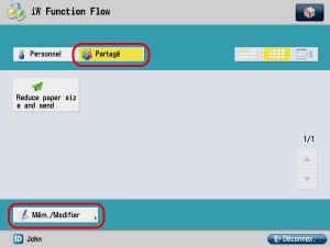 Appuyer sur [Nom du flux] → modifier le nom du flux pour utiliser [Réduire le format papier/envoyer/imprimer].