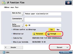 Sélectionner [Partagé] sous [Mémoriser sur] → appuyer sur [Suivant].