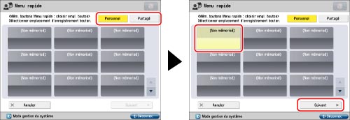 Le nombre de boutons personnels pouvant être enregistrés peut être inférieur au nombre maximum, selon l'utilisation de la mémoire de la fonction Menu rapide.