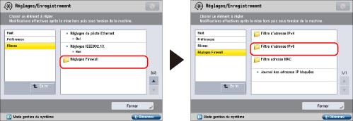 Si l'utilisation d'un protocole ou d'une application d'impression n'est pas autorisée sur le périphérique, celui-ci ne peut pas être employé, même si les réglages de [Réglages Firewall] ont été modifiés. Il est donc nécessaire de configurer les réglages pour autoriser le protocole ou l'application d'impression.