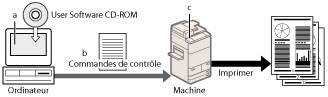 A l'aide d'un pilote d'imprimante, les données à imprimer sont converties en commandes de contrôle.