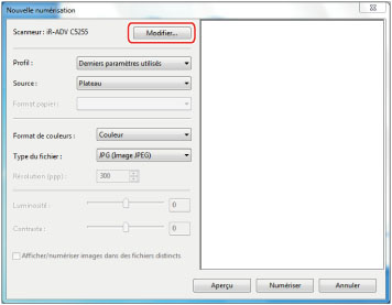 si un chargeur est utilisé, sélectionner [Chargeur (Lire le recto)], ou sélectionner [Plateau] si l'original se trouve sur la vitre d'exposition.