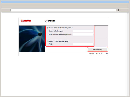 Il est également possible de se connecter en saisissant l'URL de la page [Contrôle d'accès utilisateur Espace avancé] dans la barre d'adresse, comme indiqué ci-dessous (sensible à la casse).
