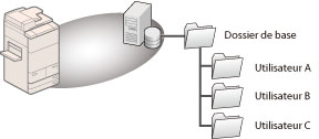 Si le dossier de base est défini sur le serveur WebDAV, les dossiers pour tous les utilisateurs doivent être préparés en avance.