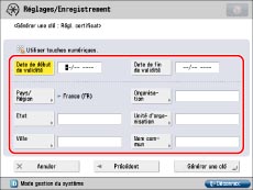 Un serveur DNS est nécessaire pour utiliser le nom de domaine complètement qualifié de la machine dans [Nom commun]. Utiliser l'adresse IP de la machine en cas d'absence de serveur DNS.