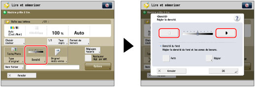 Il est possible de régler manuellement la densité de lecture au niveau le mieux adapté à l'original.