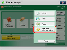 Pour envoyer un lien à une boîte aux lettres par e-mail, l'adresse e-mail de cette boîte doit être enregistrée au préalable. (Voir "Réglages de la boîte aux lettres".)