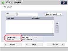 Avant de pouvoir créer une adresse de groupe, il faut avoir enregistré au préalable les destinataires (tels que des adresses e-mail et des adresses de serveurs de fichiers).