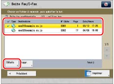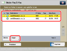 Vérification des informations détaillées/suppression d'un fichier stocké dans une boîte fax confidentielle