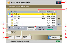 Pour ajouter un fichier, supprimer le fichier sélectionné ou modifier le nom de fichier.