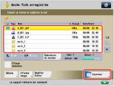 Il est nécessaire de définir <Utiliser fonction d'impression> sous [Utiliser fonction lecture/impression] sur "Oui" pour imprimer les fichiers stockés dans le support mémoire. (Voir "Réglages du support mémoire".)