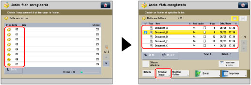 Sélectionner la boîte aux lettres souhaitée → sélectionner le fichier souhaité → appuyer sur [Afficher image].