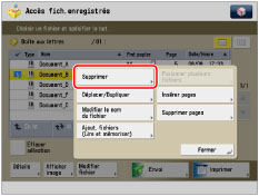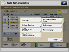 Lorsque plusieurs fichiers sont sélectionnés et que l'on appuie sur [Supprimer pages], le fichier dans lequel les pages seront supprimées devient le fichier sélectionné (mis en surbrillance).