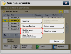 Si plusieurs fichiers sont sélectionnés et que l'on appuie sur [Modifier le nom du fichier], le nom de fichier sélectionné (mis en surbrillance) sera modifié.
