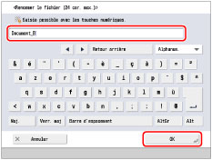 A la création d'un fichier sans nom, la machine attribue automatiquement un nom au fichier qui se compose de l'année, du mois, du jour et de l'heure de création. Par exemple, si un document est créé à 13 h 35, 41 secondes, le 15 janvier 2012, son nom sera <20120115133541>.
