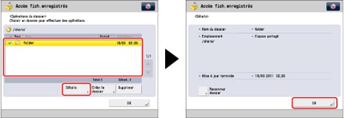 Sélectionner le dossier souhaité → appuyer sur [Détails] → [OK].