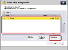 Sélectionner le dossier souhaité → appuyer sur [Supprimer].