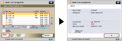 Sélectionner le fichier souhaité → appuyer sur [Détails] → [OK].