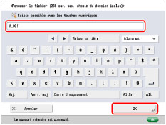 Saisir un nom de fichier → appuyer sur [OK].