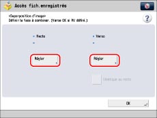 Pour reproduire le réglage de <Recto> pour le <Verso>, appuyer sur [Identique au recto].