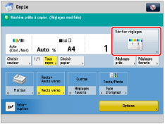 Les réglages peuvent être rappelés sans afficher un écran de confirmation depuis l'écran des fonctions de base du mode Copie.