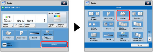 Les modes Finition ne sont pas définissables si un format libre, format personnalisé, les transparents, le papier calque ou les étiquettes sont sélectionnés.