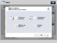 Si l'option [Auto] est utilisée pour le mode Correction du renflement avec le mode Copie en tandem, il faut régler au préalable la même correction de renflement sur cette machine et l'imprimante de copie en tandem. Si la même correction de renflement n'est pas définie sur les deux machines, les valeurs de correction de renflement définies sur chaque machine sont appliquées.