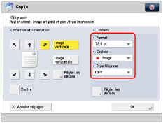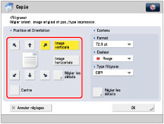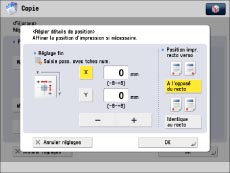 Si le même emplacement d'impression du numéro est sélectionné pour n'importe quelle combinaison de deux modes parmi les suivants : [Numérotation des pages], [Numérotation jeux copies] ou [Date d'impression], un message demandant la confirmation s'affiche lorsque l'on appuie sur