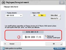 Il est possible également de synchroniser automatiquement la date et l'heure sur celles d'un serveur du réseau avec le protocole SNTP dans l'écran Réglages/Enregistrement. (Voir "Réglages communs à TCP/IPv4 et TCP/IPv6".)