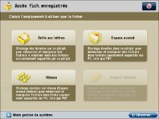 Il est possible de restreindre le stockage de fichiers sur le support mémoire ainsi que l'impression de fichiers depuis le support mémoire.