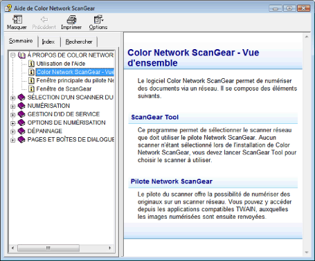 Accès à l'aide en ligne de Color Network ScanGear/Network ScanGear